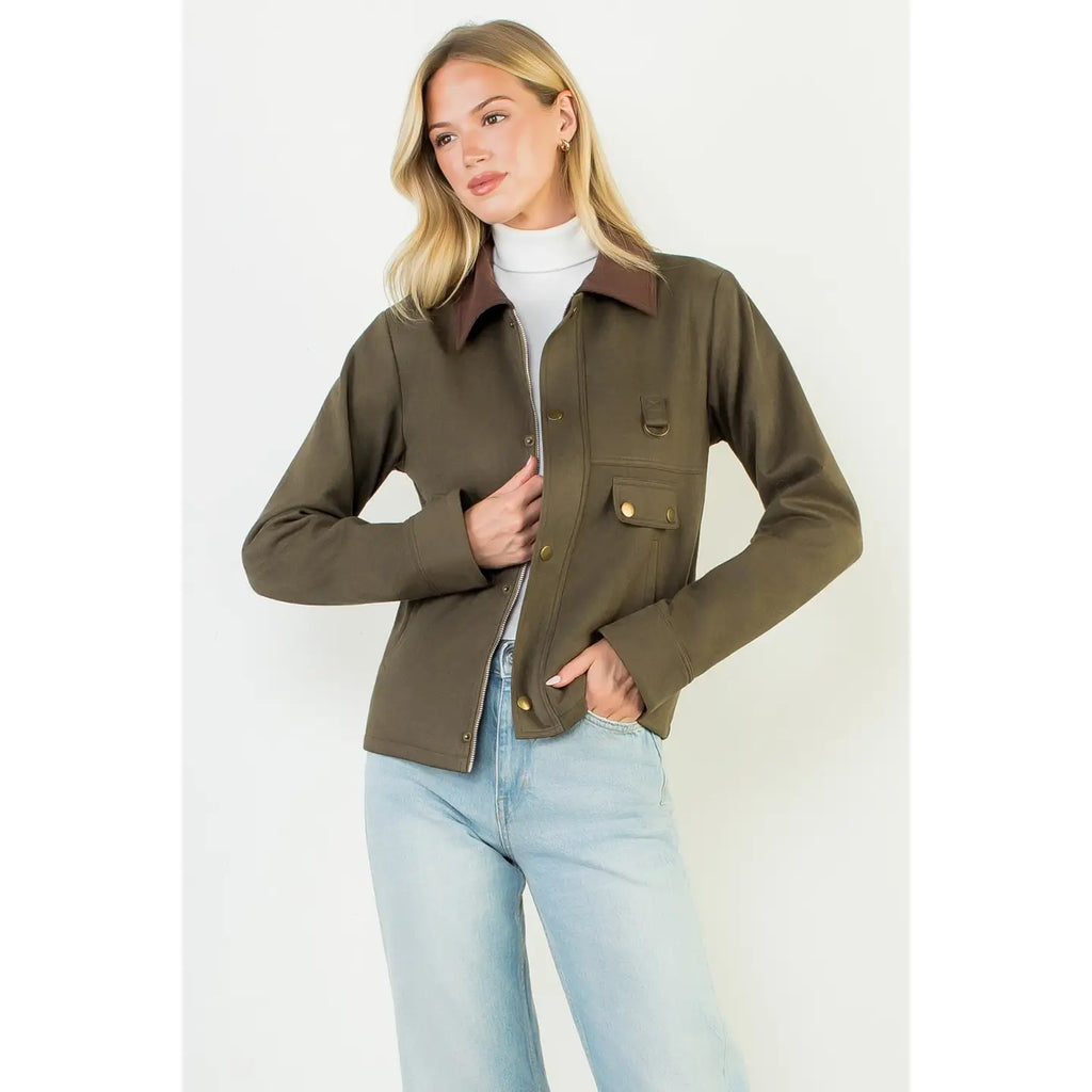 Quilted Collared Jacket With Pockets-Vintage Mocha