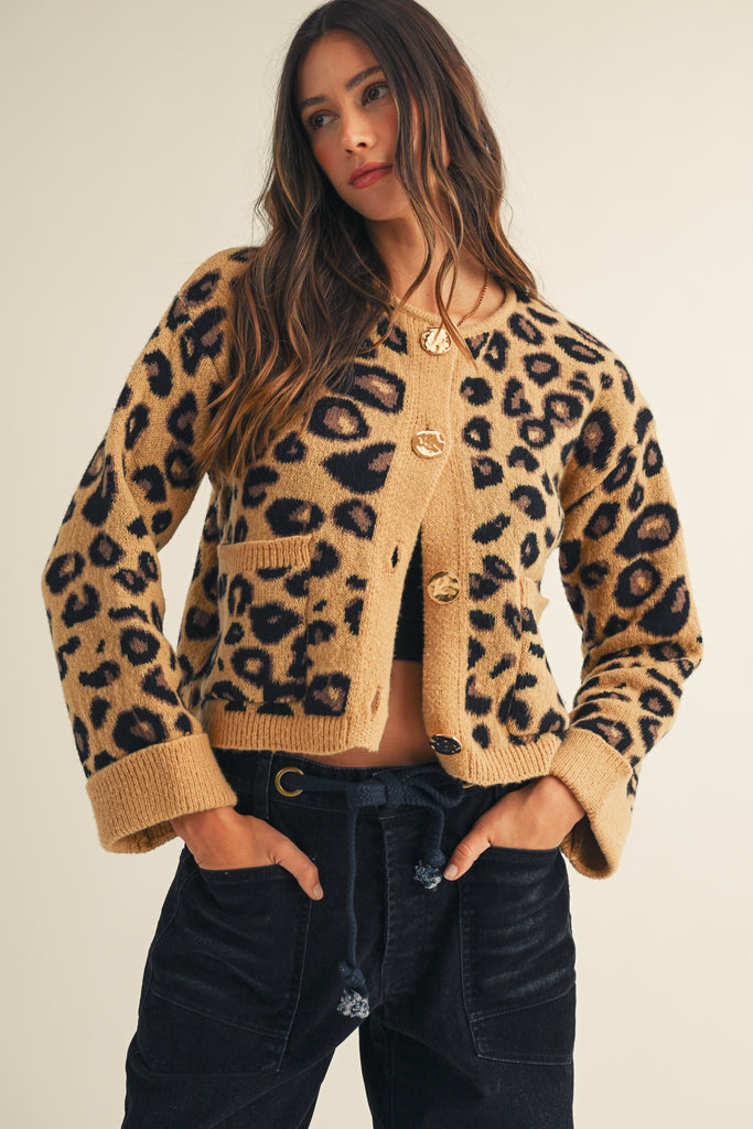 Luxe Leopard Vintage Gold Button Pocket Cardigan