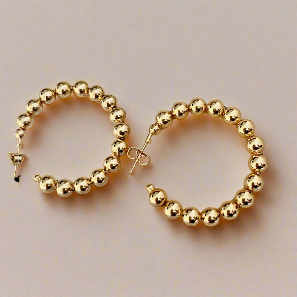 Elevate your look with these playful Beaded Hoop Earrings! Lightweight yet chunky, these 18K gold-filled hoops measure a bold 40mm with a trendy 6mm thickness. Waterproof and water-resistant, they’re perfect for all-day wear—whether you're poolside or dancing the night away. Hypoallergenic, lead- and nickel-free, they’re gentle on your skin while adding a fun, oversized flair to any outfit. A must-have splash of sparkle for your jewelry collection!