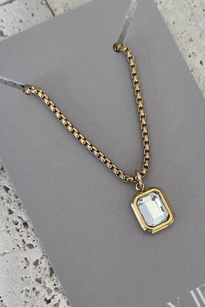 Add a sparkling touch to your look with this clear crystal pendant necklace! Featuring an 18k gold plated boxed chain, it’s perfect for layering or wearing solo. Hypoallergenic and free from lead and nickel, it’s gentle on your skin and water-resistant for everyday wear. Measuring 16" with a 2" extension, it’s designed to fit just right for any outfit or occasion.