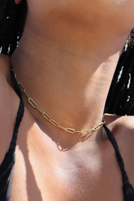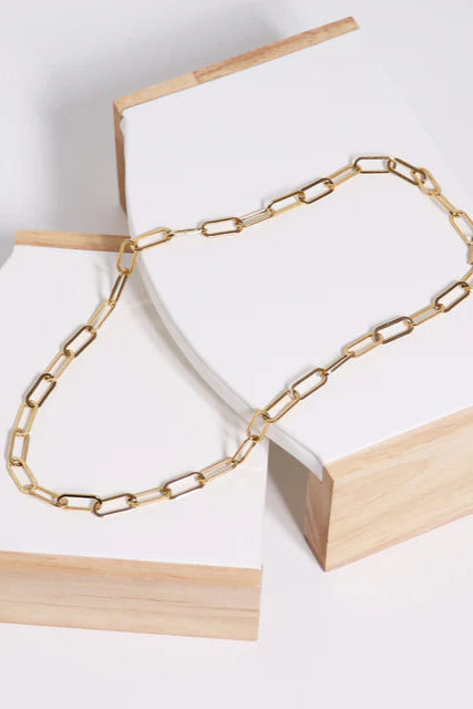 This modern necklace features a new trending chain design using dainty, paper-clip-styled links to form a beautiful and interesting piece. It's a simple, casual necklace you can wear anywhere and with anything, but the best part? It's customizable! You can add your favorite small pendants or charms to bring your own style to this necklace. You even layer them with other delicate chains to create a trendy look.