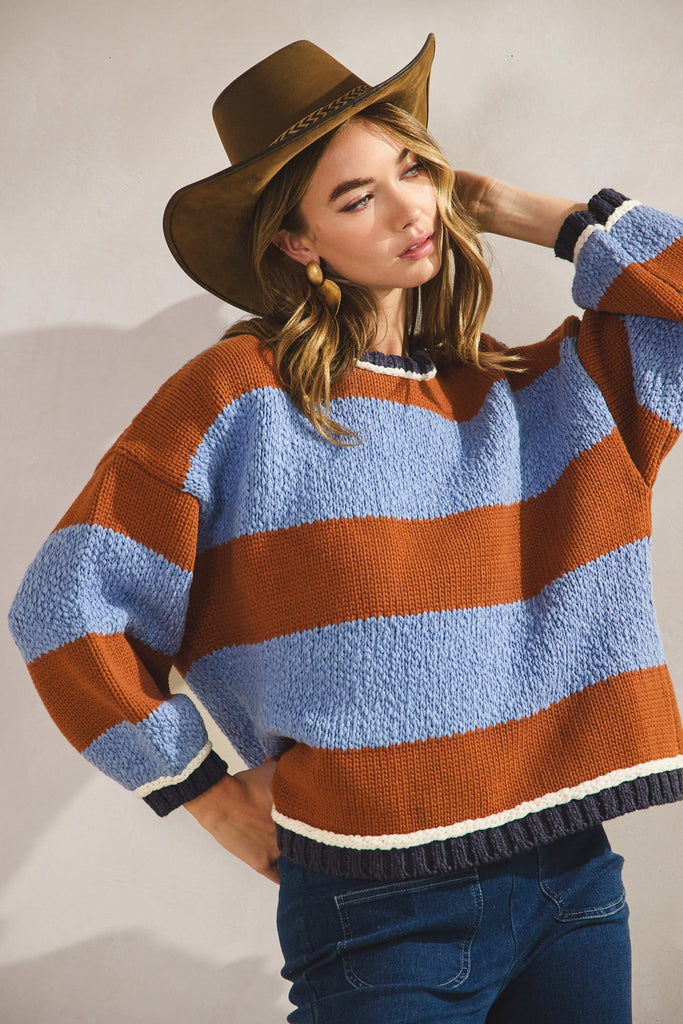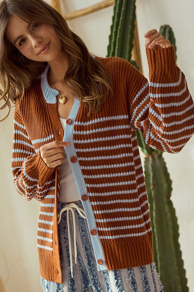 Vintage Striped Cardigan-Burgundy/Oatmeal