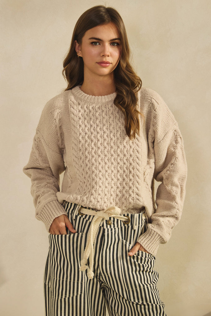 Soft Classic Knit Pattern Sweater-Oatmeal