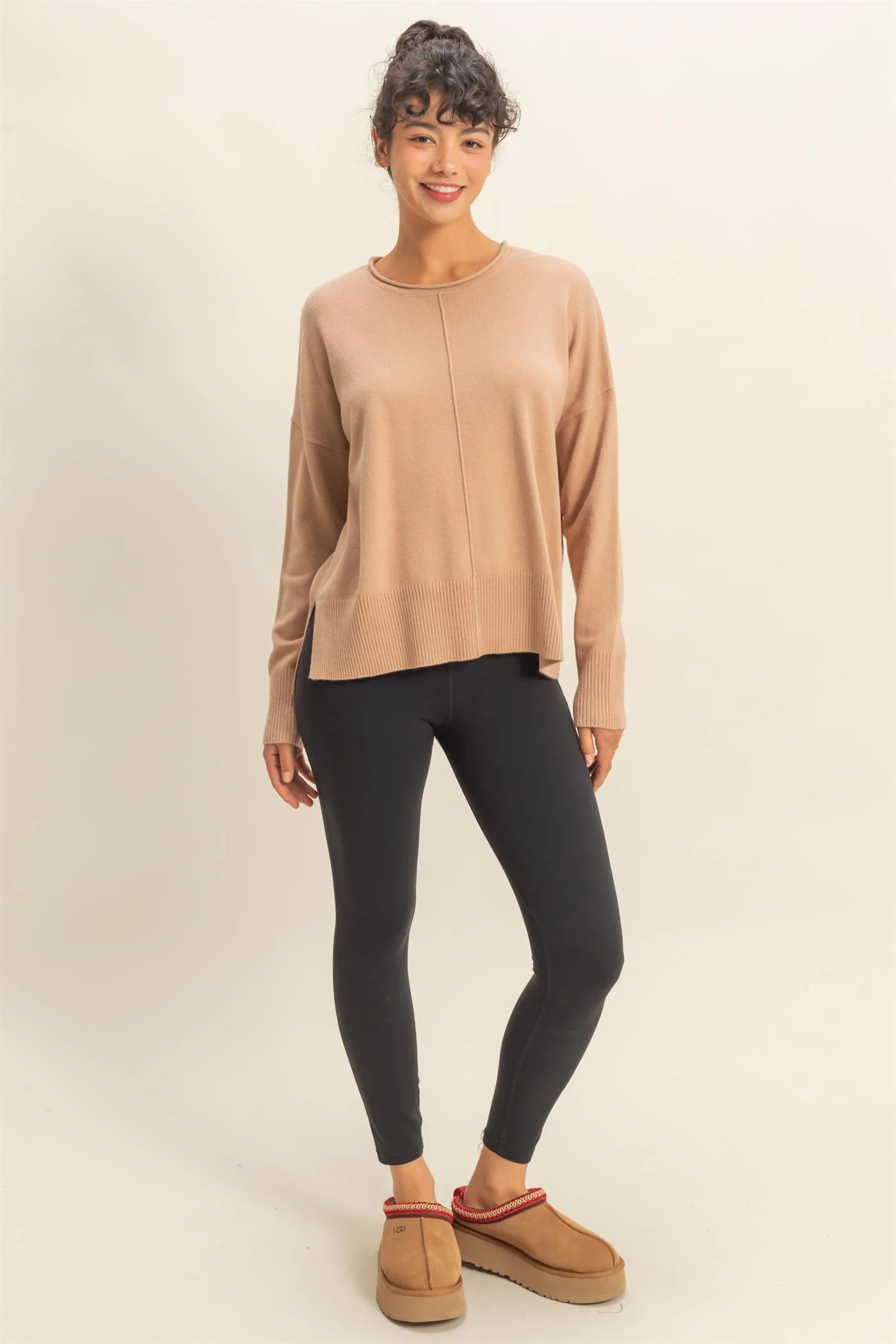 Roll Neck Drop Shoulder Sweater- Dark Taupe