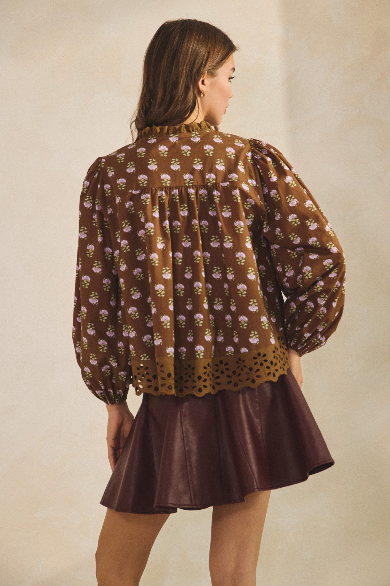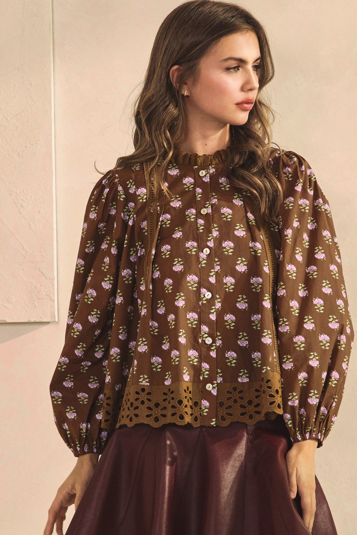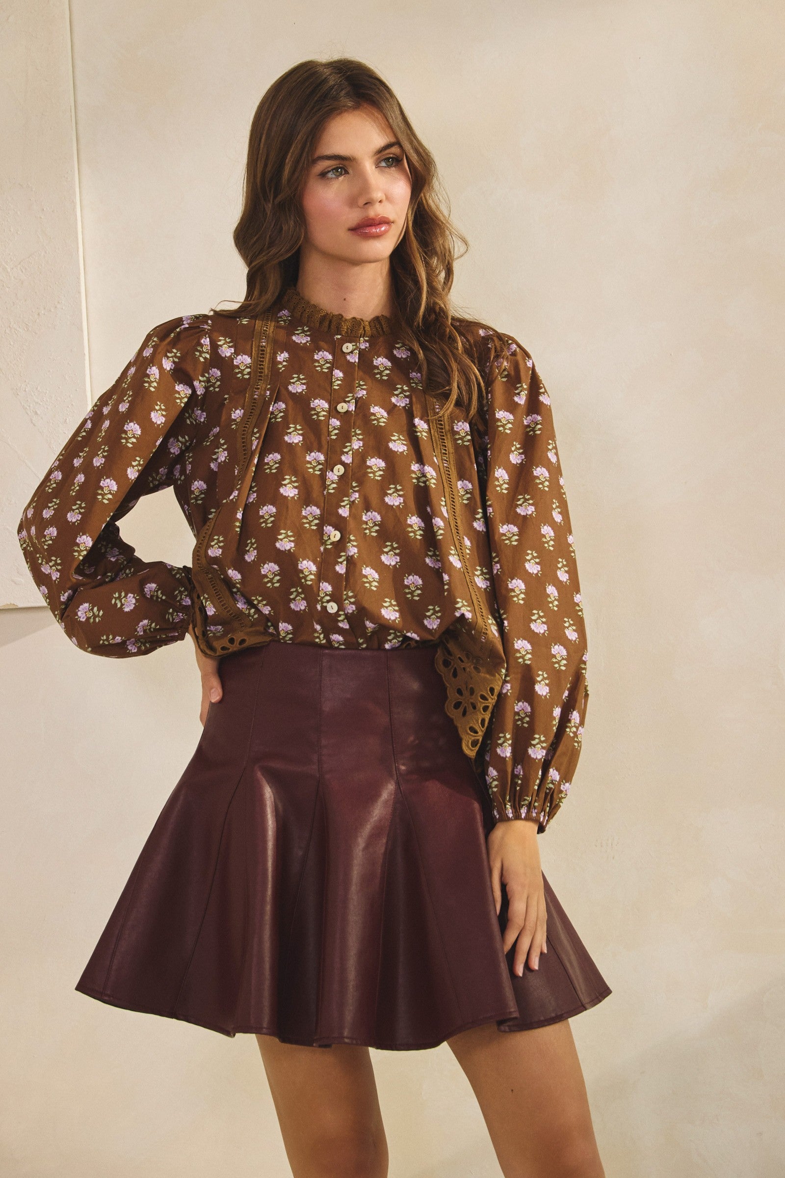 Twirl into any room wearing this charming ruffled floral top! The mocha floral print brings warmth and personality to your wardrobe, while delicate ruffles add a touch of whimsy and movement. Perfect for brunch dates, casual outings, or whenever you want to feel effortlessly put-together. This playful piece pairs beautifully with jeans, skirts, or shorts for endless styling possibilities. Embrace your fun side and let your style do the talking! Model is wearing a size small.