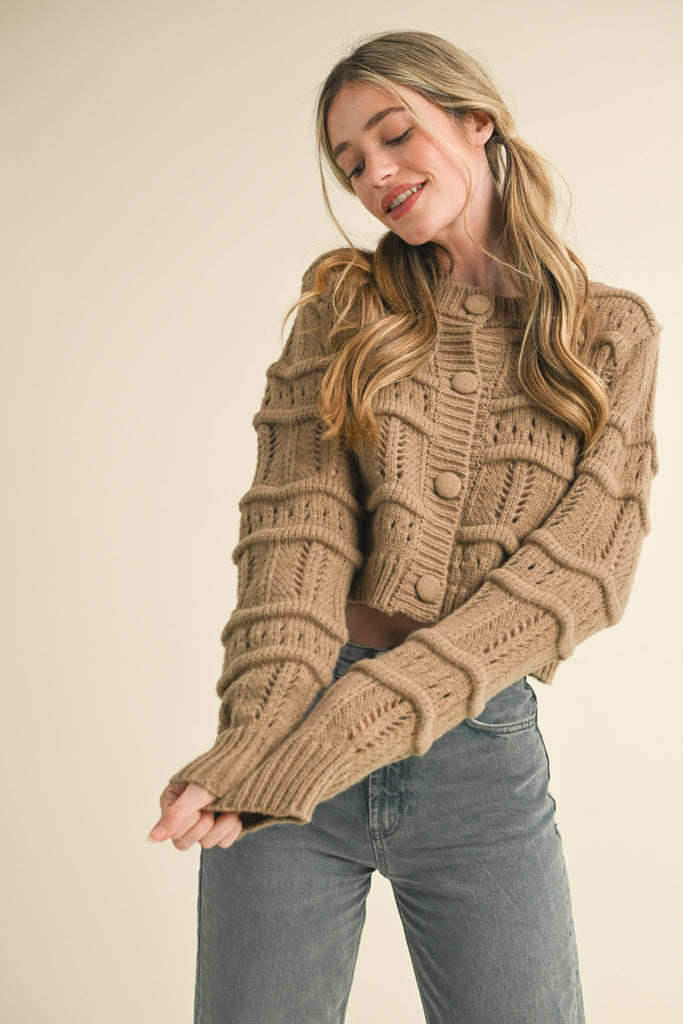 Pointelle Cardigan -Taupe