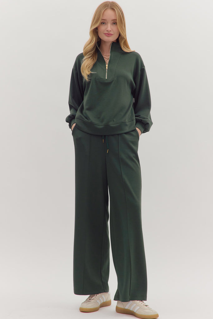 Solid Mock Neck Knit Top- Hunter Green