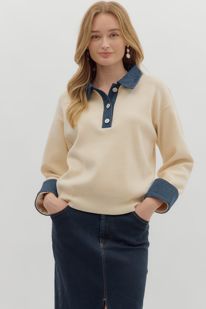 Denim Detail Sweater Top