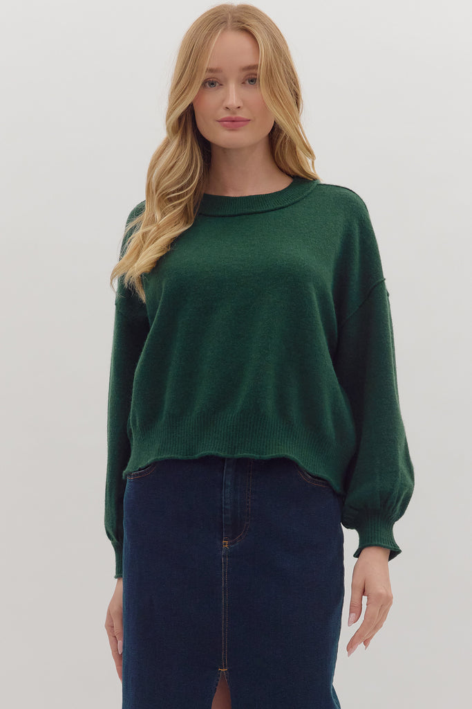 Solid Long Sleeve Pullover Sweater- Hunter Green