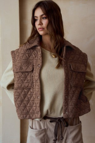 Quilted Stitch Knit Bomber Vest-Oatmeal