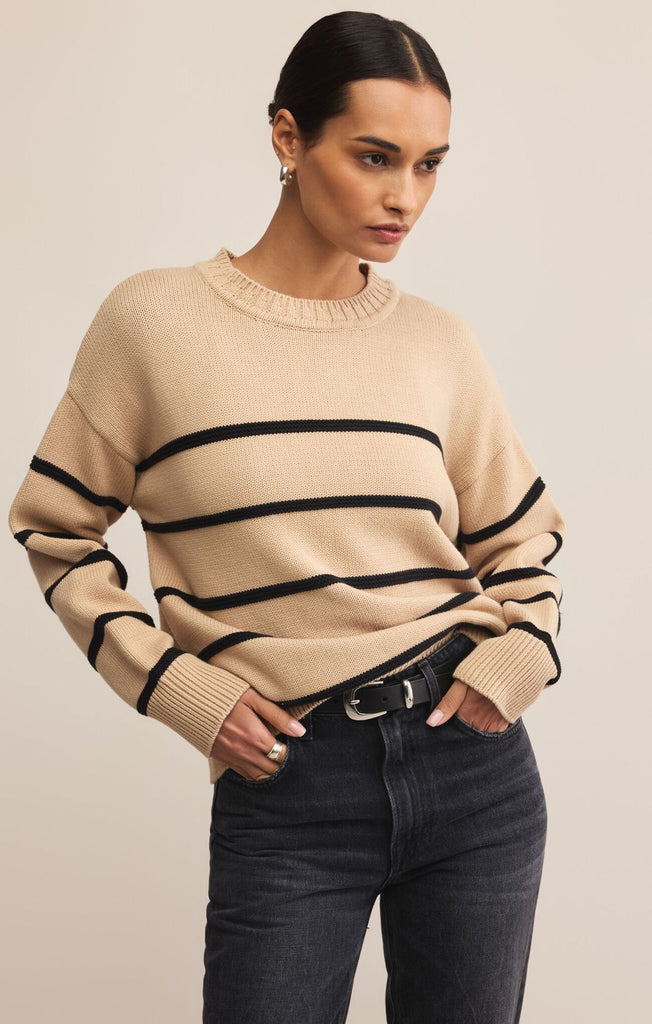 Z-Supply: Boyfriend Striped Sweater- Biscuit