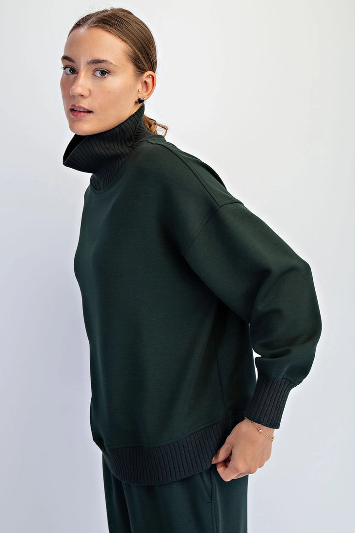 Modal Scuba Ribbed Mock Neck Pullover- Regency Green