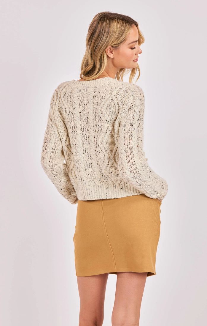 Effortless Cable Knit Cardigan Sweater-Oatmeal Melange