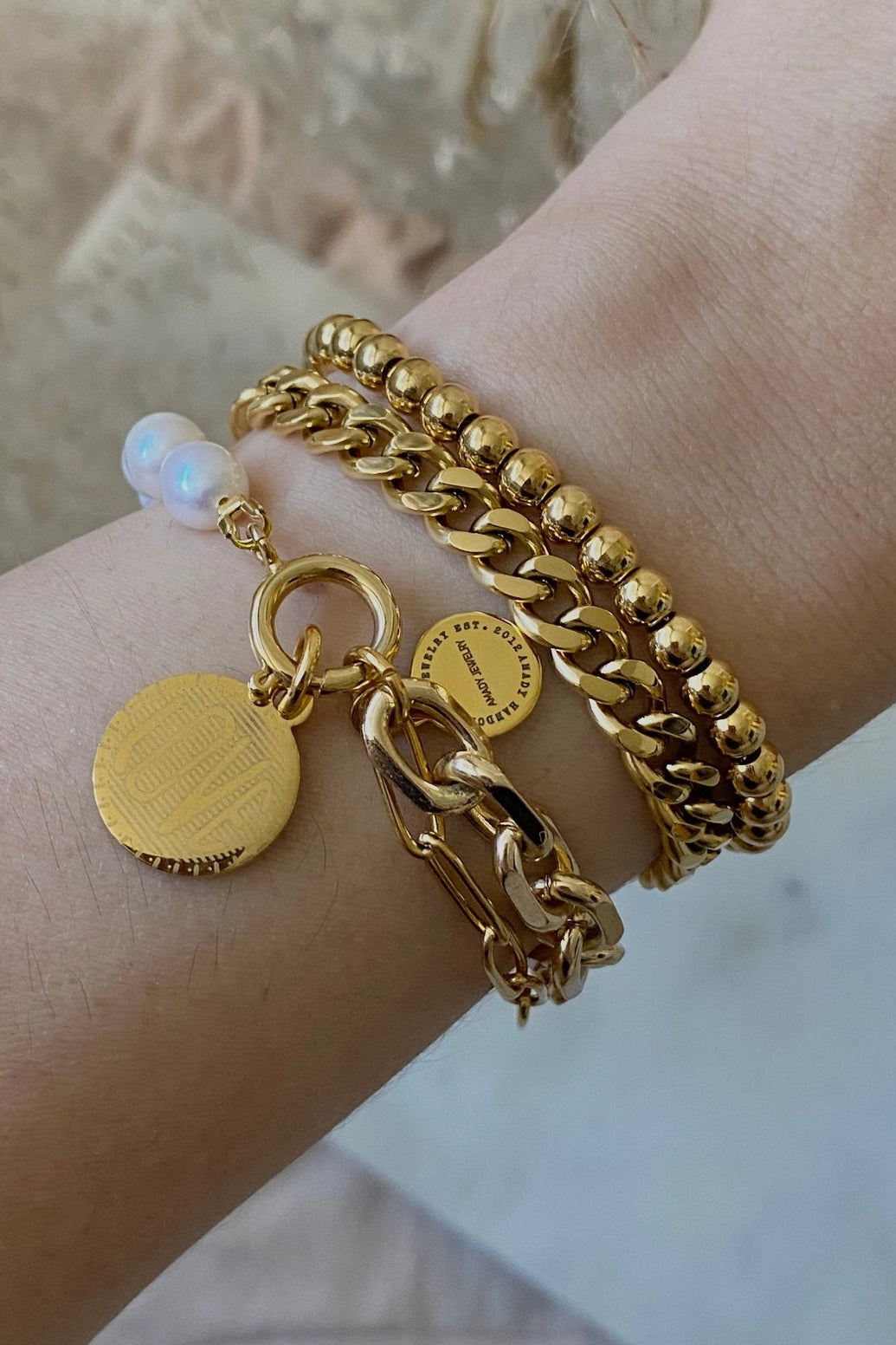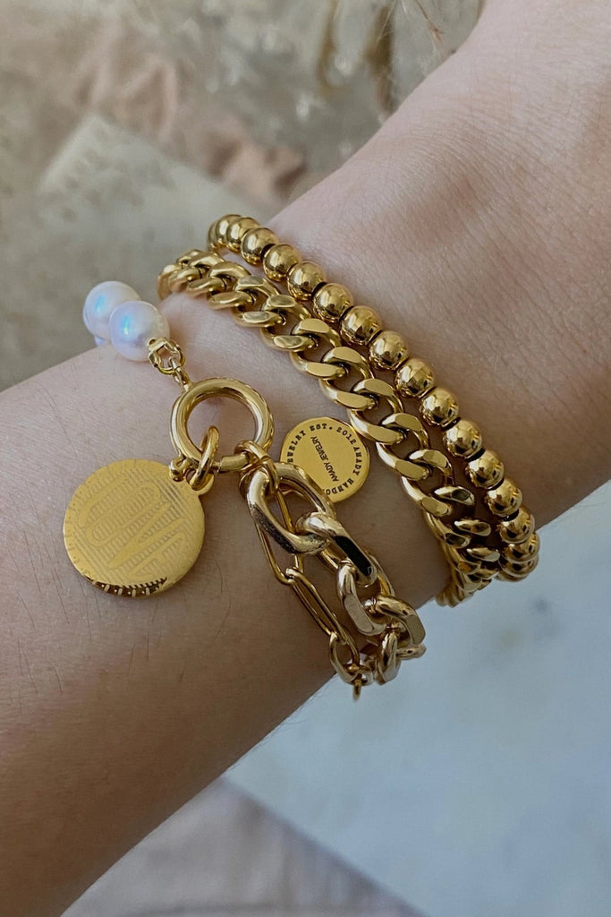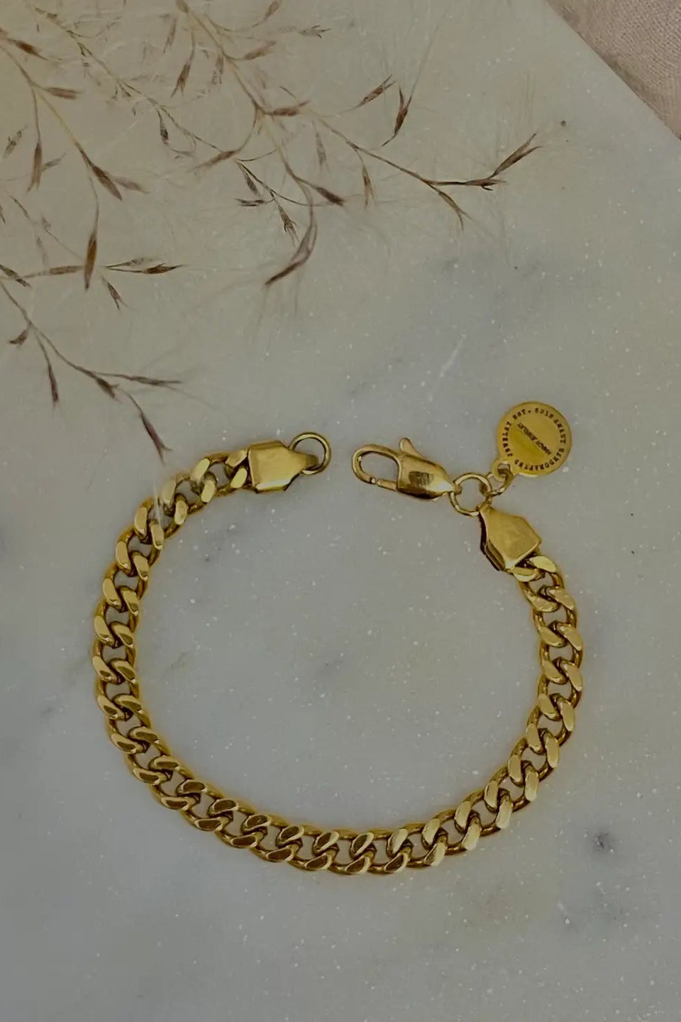 Add a touch of shine to your wrist with this 18k gold filled Cuban Curb Chain bracelet. Measuring 7.25 inches, it’s perfect for wearing solo or stacking up with your favorite bracelets from the collection. Plus, it’s waterproof, so you can keep the sparkle going rain or shine!