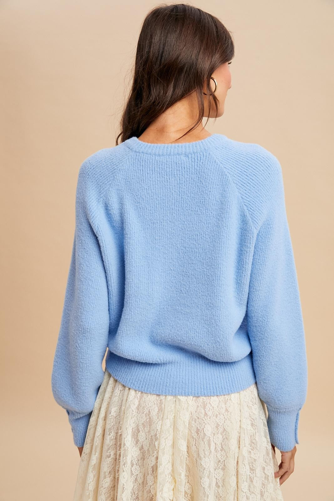Fuzzy Ribbed Knitted Cardigan- Icy Blue