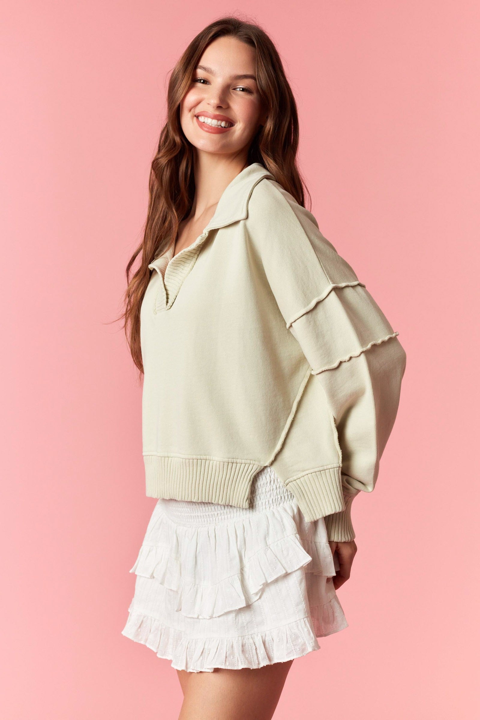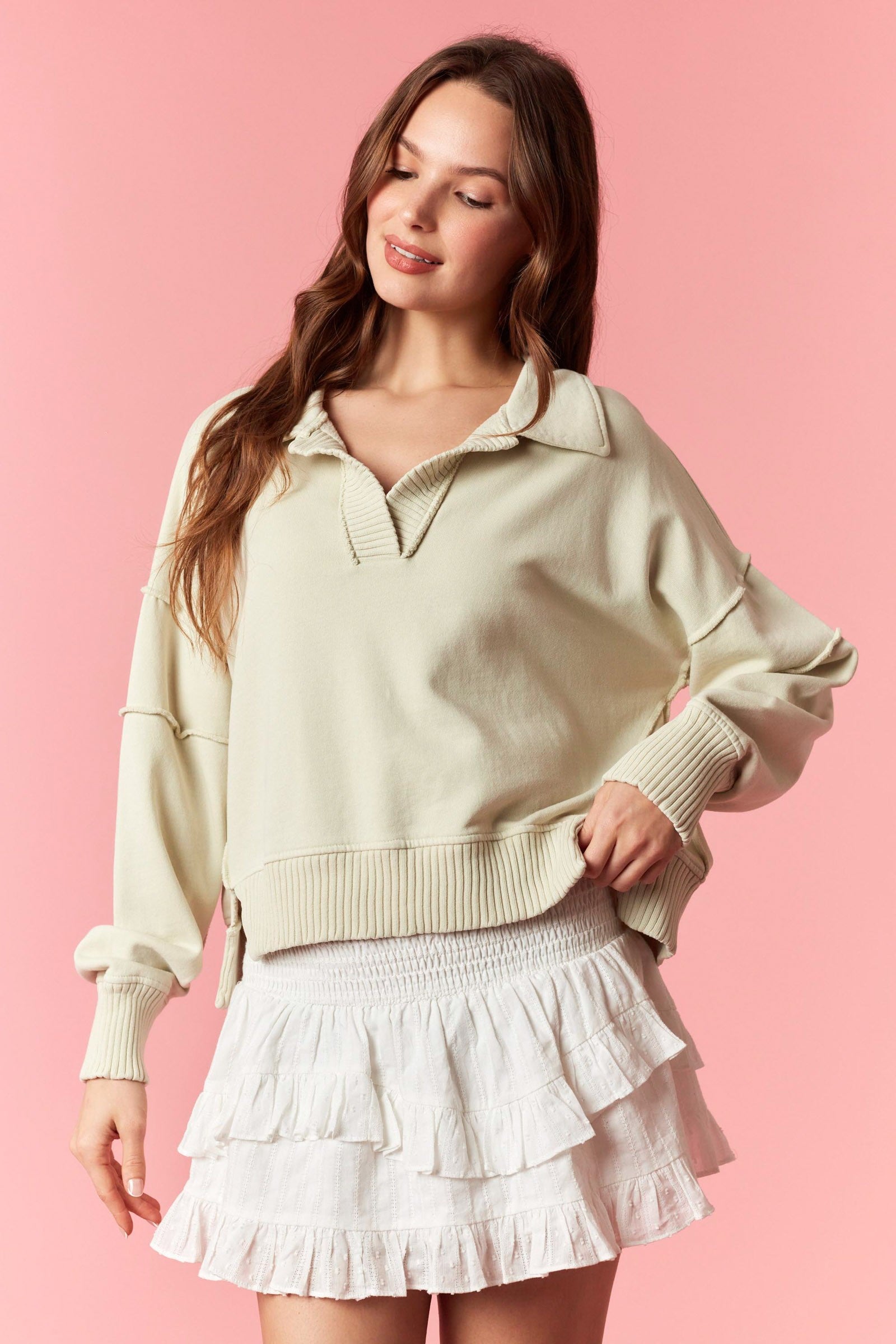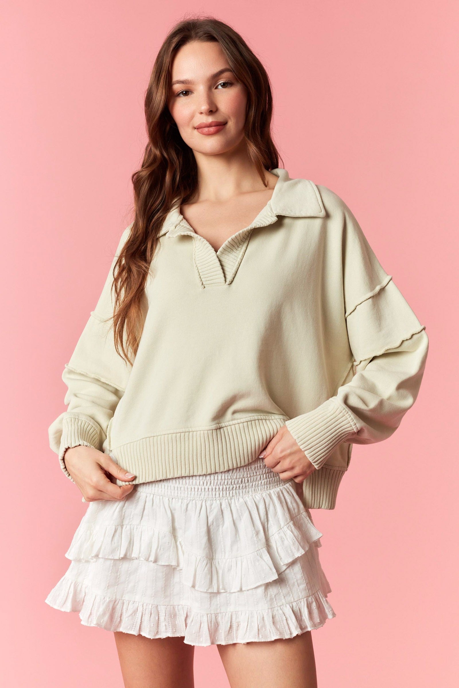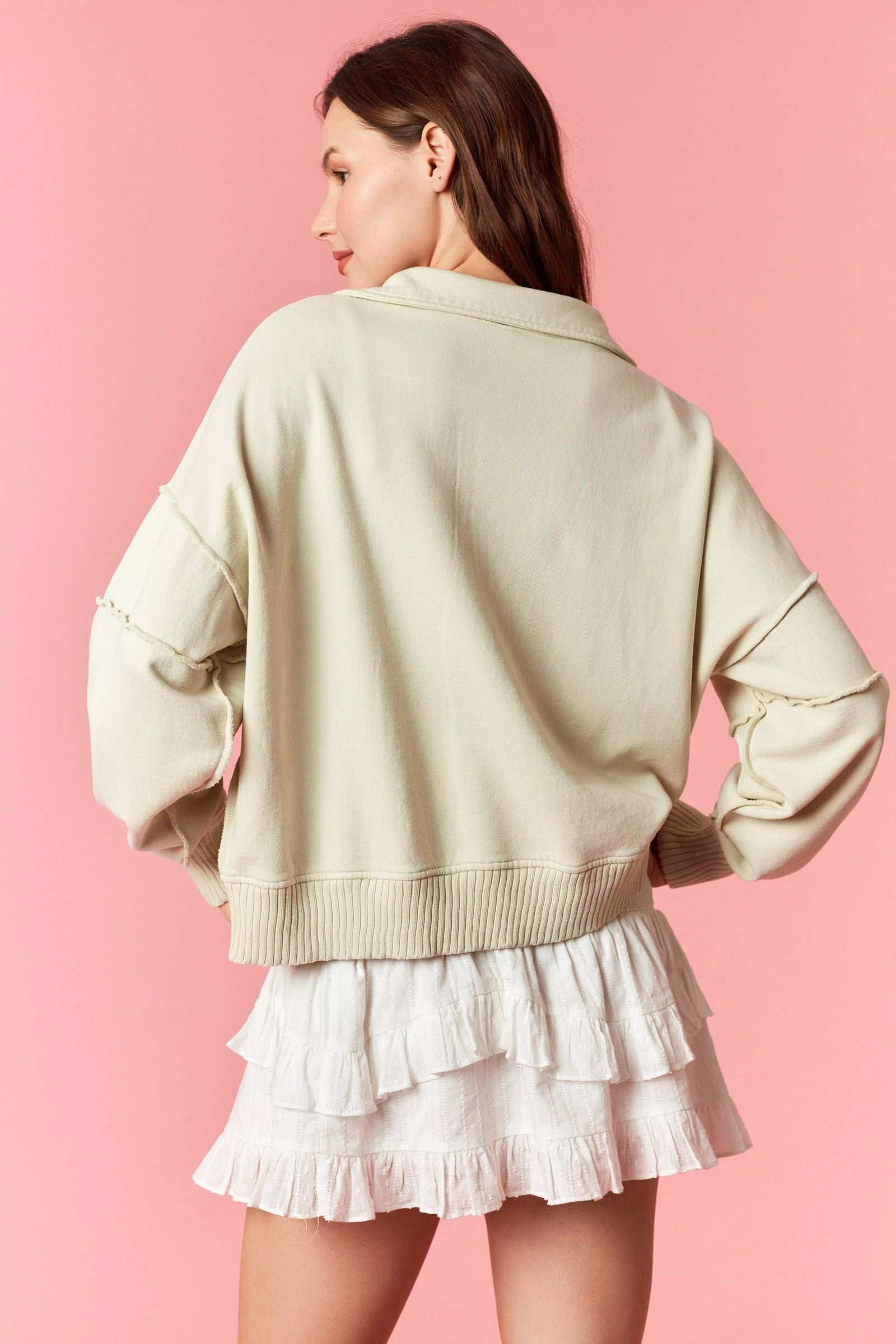 Garment Dye Mineral Washed French Terry V-neck Sweatshirt-Sage